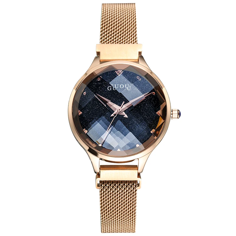 2019 GUOU Luxury Diamond Women Quartz Watches Gold Slim Mesh Steel Strap Adjustable Waterproof Ladi 32974462064